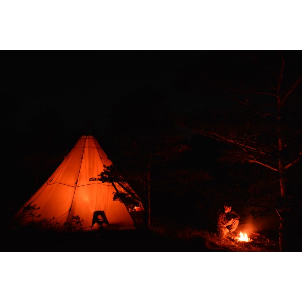 Det er muligt at fastgøre både bundklæde og indertelt til lavvoen. Det er også muligt at fyre med en ovn eller brænder inde i Lavvoen, da stoffet behandles med flammehæmmende materiale.