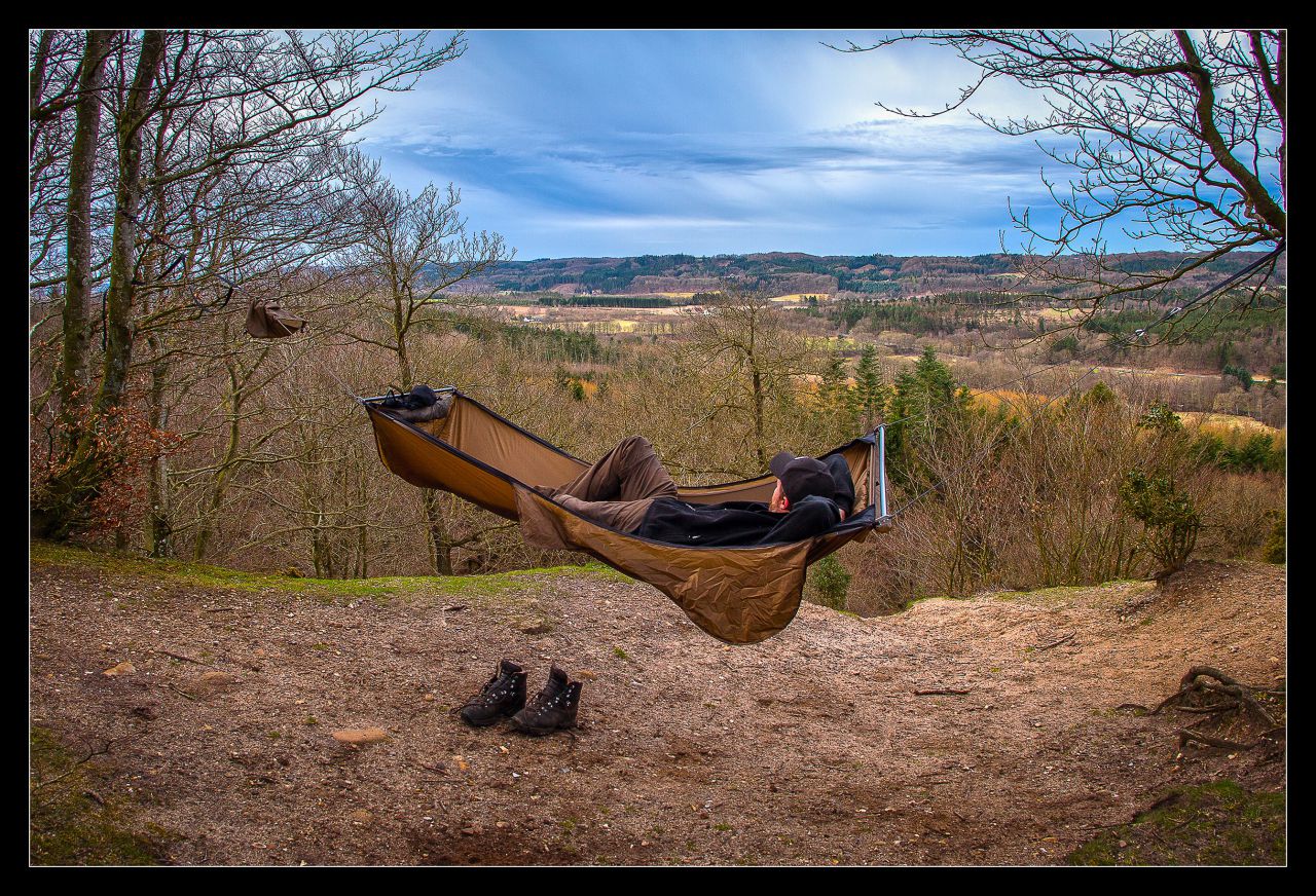 Warbonnet Rigderunner er en genial "bro" hængekøje som med sine medfølgende stænger spreder hængekøjen ender ud og giver masser af plads at røre sig på.